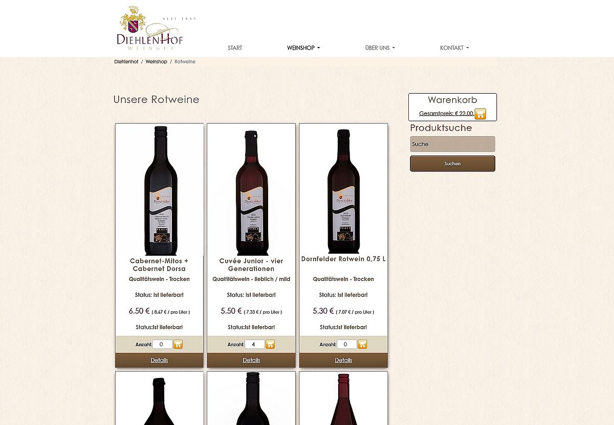 Shop: Weingut Diehlenhof: Weinverkauf Übersicht
